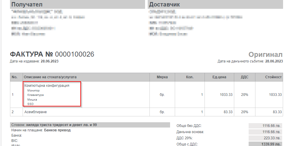 Стоките, към които можете да добавяте подробно описание, трябва да са създадени в Склад/Стоки, тогава при избор на стока ще имате икона в полето на стоката, когато кликнете на иконата ще се отвори прозорец, в който можете да въведете подробно описание.