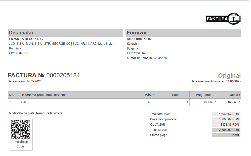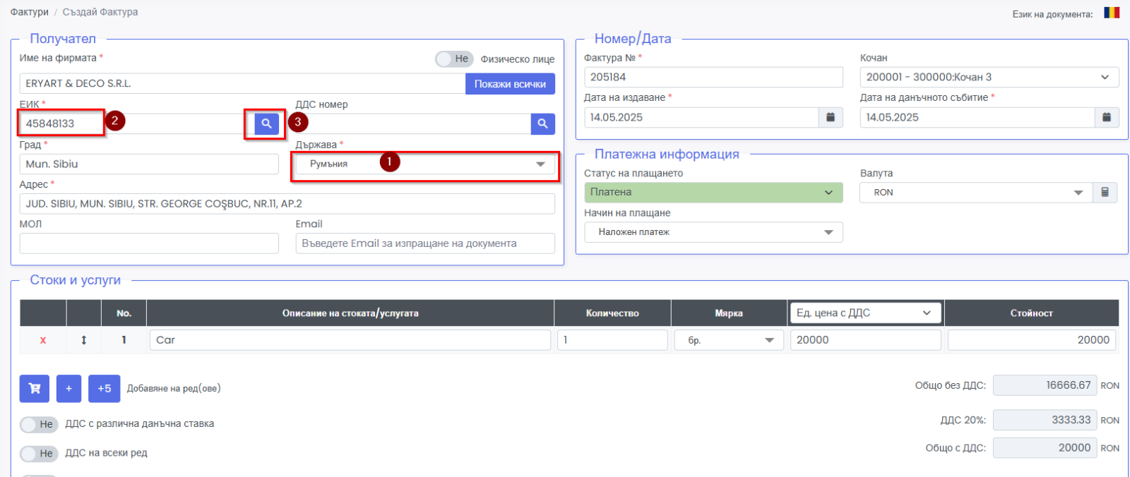 За румънски фирми, можете да се възползвате от автоматичното попълване на данните на фирмата: